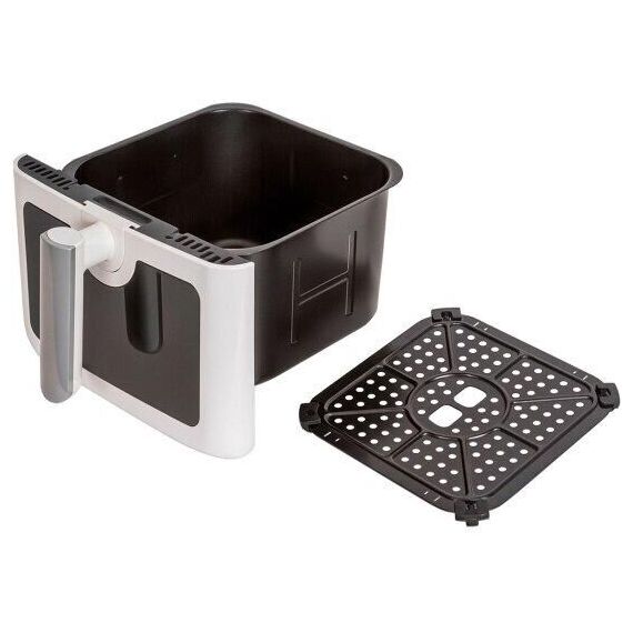 Аэрогриль, полностью металлический корпус, цифровое сенсорное управление, цветной светодиодный дисплей, мощность: 1850 Вт, внутренний объем: 8 Л, антипригарное покрытие, смотровое окно , внутренняя подсветка, таймер: до 60 минут, регулируемая температура: 40 -200 градусов, ручная настройка режимов приготовления, 8 предустановленных программ приготовления: картофель фри, хлеб, овощи, стейк, куриные ножки, рыба, креветки, разморозка, технология "Fry Force 360°" позволяет готовить блюда быстро и равномерно, практически без масла
