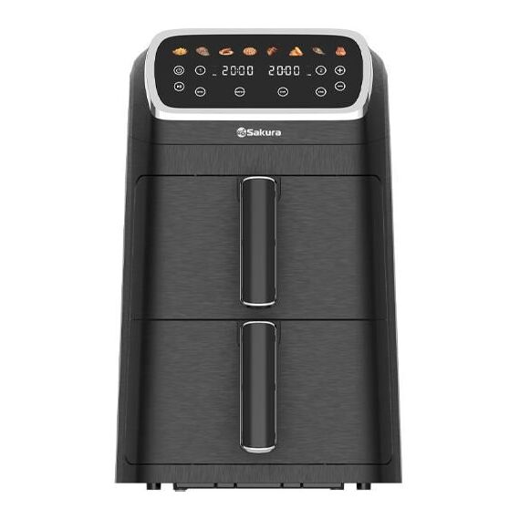 Аэрогриль; Мощность: 2600 Вт; Общий объем: 10л (2 чаши по 5 л); 8 программ приготовления; Возможность готовки каждой чаше по отдельности или в обеих сразу; Регулировка температуры: 80-200 °C; Таймер на 60 мин; Сенсорное управление; Готовит без масла или с минимальным его использованием; Подходит для всех блюд, которые готовятся в духовке; Цвет: черный; Длина шнура 80см; Размер: 352x222.5x404 мм