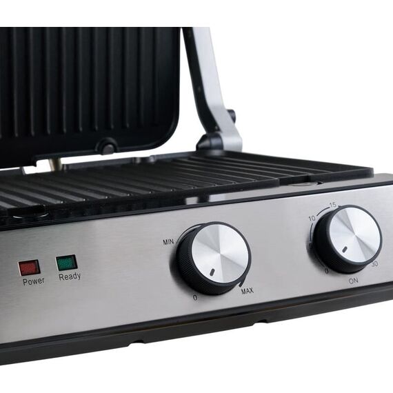 Параметры электросети, В/Гц 220-240 / 50-60 Мощность, Вт 2000 Цвет нержавеющая сталь, чёрный Материал корпуса бакелит+нержавеющая сталь Тип управления механический Настраиваемый таймер 30 мин Размер рабочей поверхности, мм 290x230 Размер изделия, мм 345x334x148 Вес, кг 4,25 Антипригарное покрытие на водной основе Режим барбекю открытие на 180° Регулируемый термостат Функция пресса Таймер до 30 минут Съемный поддон для сока и масла Удобная ручка с защитой от нагревания Защита от перегрева