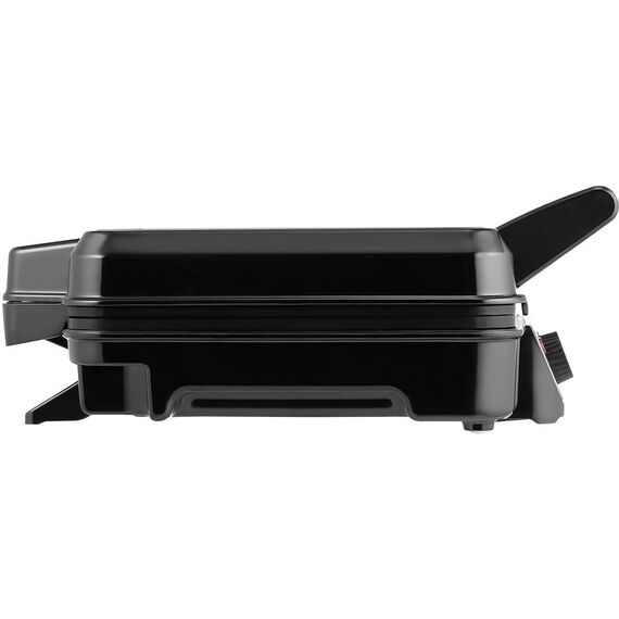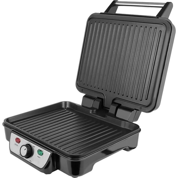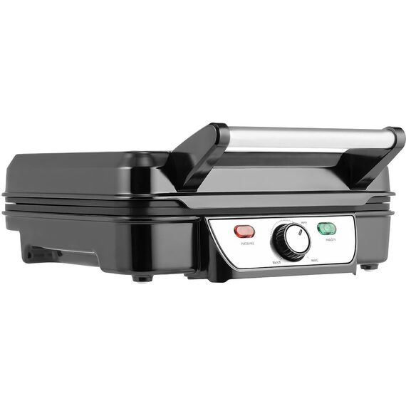 Мощность 1800 Вт. Антипригарное покрытие. Поддон для сбора масла. Регулировка температуры. LED-индикаторы. Ненагревающаяся ручка. Нескользящие устойчивые ножки. Быстрый нагревдо 240 градусов. 2 жаровни 280х230 мм . Отделка корпуса нержавеющей высококачественной сталью.