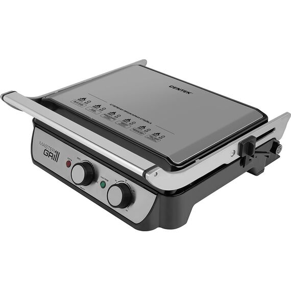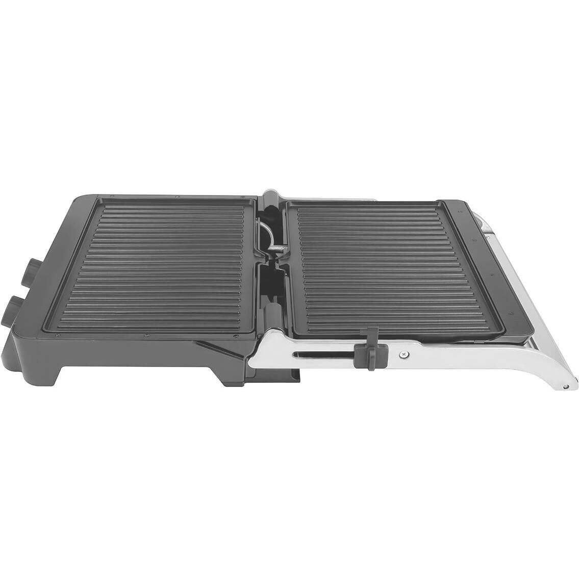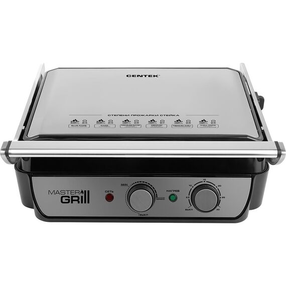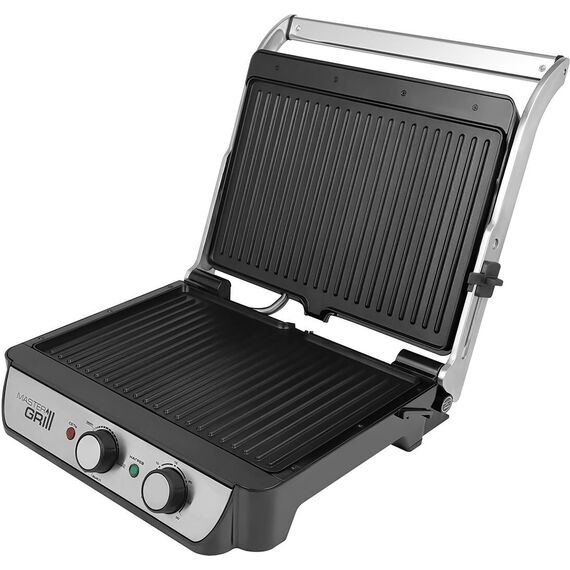 Мощность 2000 Вт. Антипригарное покрытие. Поддон для сбора масла. Открытие пластин180 градусов. LED-индикаторы. 2 рабочие пластины. Быстрый нагревдо 240 градусов. Большая жаровня 340х230 мм. Отделка корпуса нержавеющей высококачественной сталью.