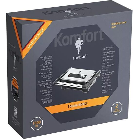 Мощность 1200Вт Световой индикатор работы и нагрева Сверхпрочное антипригарное покрытие TouchPro 5 Терморегулятор Ненагревающаяся ручка Прорезиненные ножки Корпус из металла и термостойкого пластика Поддон для сбора жира Фиксаторы закрывания крышки для удобства вертикального хранения Открывание на 180 градусов Размер пластин 26*16,5см Длина шнура 75 см Напряжение: 220-240 В, 50-60 Гц Гарантия 2 года