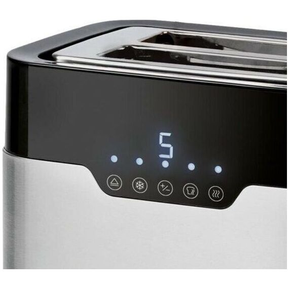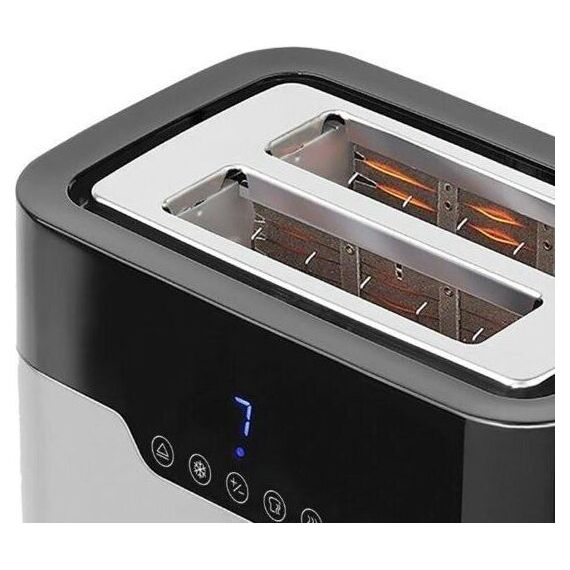 Мощность 920 Вт Управление Сенсорное Кол-во режимов 7 Режимы Подогрев, Разморозка Материал корпуса Нержавеющая сталь, Пластик Особенности Cъемный поддон для сбора крошек, LED-дисплей, Ненагревающийся корпус, Одностороннее обжаривание, Отсек для хранения шнура, Функция отмены