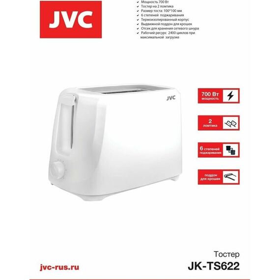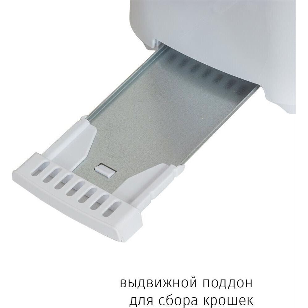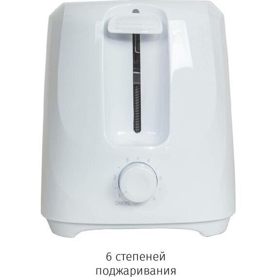 Тостер, мощность 700 Вт, 2 ломтика, размер тоста : 100*100 мм, 5 степеней поджаривания, термоизолированный корпус, выдвижной поддон для крошек, отсек для хранения сетевого шнура, цвет: белый