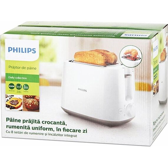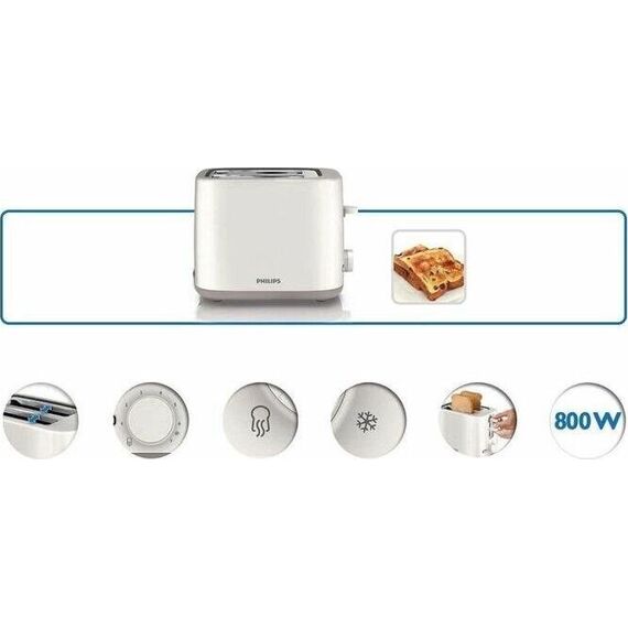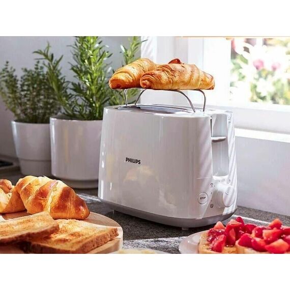 PHILIPS HD 2581/00 тостер на 2 тоста, мощность 900 Вт, механическое управление, функция размораживания, ненагревающийся корпус.