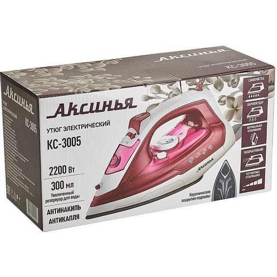 Утюг АКСИНЬЯ КС-3005 белый с малиновым