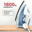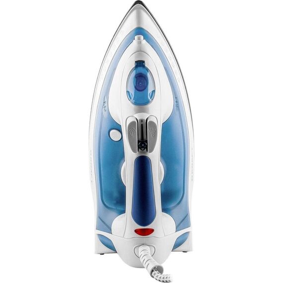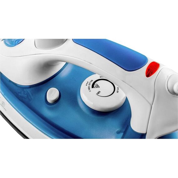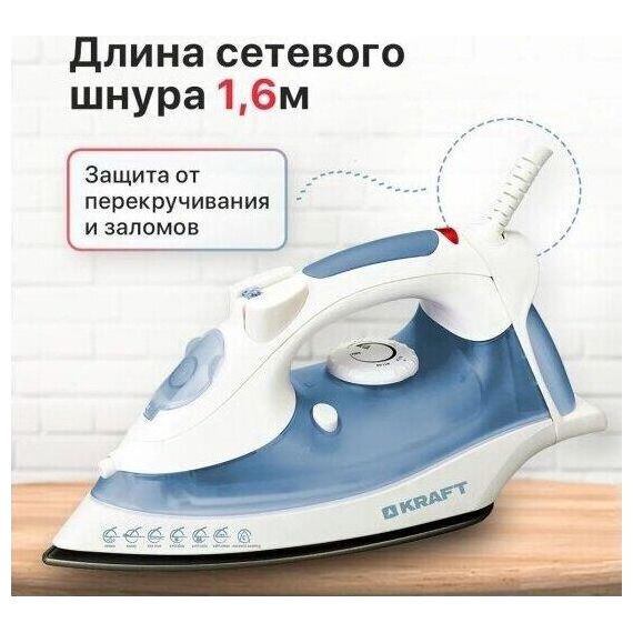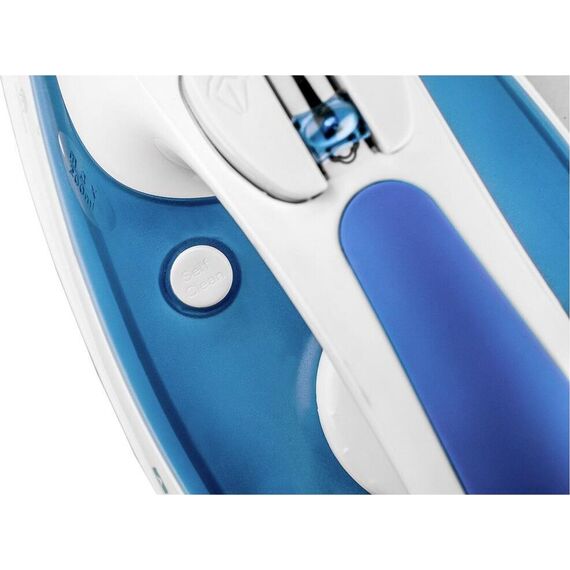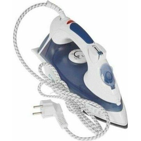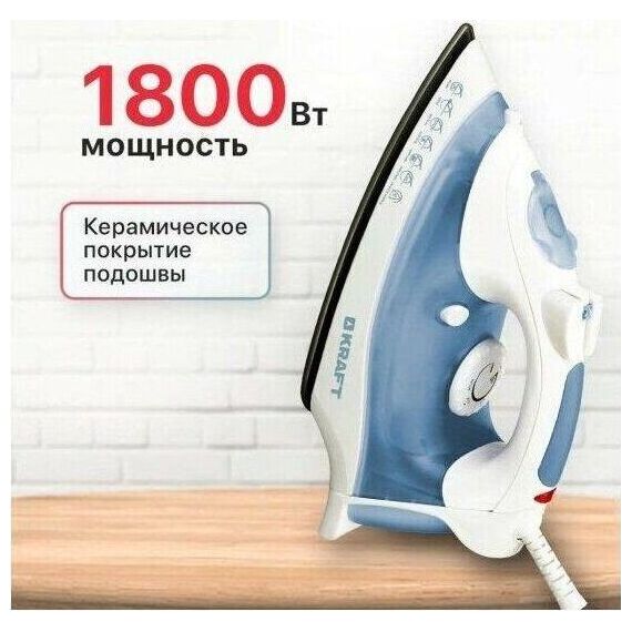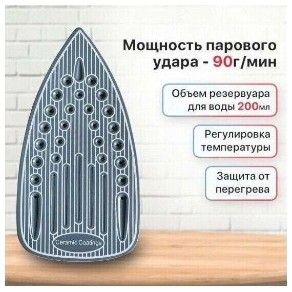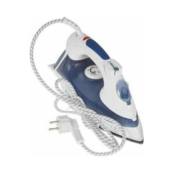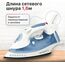 (ШхГхВ) в упаковке 31,2х12,5х15см.Подошва керамическое покрытие. Вертикальное отпаривание.Функция разбрызгивания.Система самоочистки. Ручка регулировки температуры.Длина электрического каблея (м)1,6.Паровой удар Мощность парового удара (г/мин) 0,3-0,5.Объем резервуара для воды (мл) 200. Мощность (Вт) 1800.Цвет белый / синий.