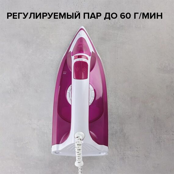 Мощность, Вт: 2200 Световой индикатор работы: Да Регулируемый пар до г/мин: 60 Паровой удар до г/мин: 120 Резервуар для воды, мл: 250 Функция разбрызгивания воды: Да Терморегулятор: Да Вертикальное отпаривание: Да Регулировка степени отпаривания: Да Покрытие подошвы: Керамическая подошва KeramoPro Самоочистка: Да Система защиты от накипи ANTI-CALC: Да Размер утюга Ш*В*Г, мм: 275*116*138 Шарнирное крепление шнура: Да Длина электрошнура, м: 1.6 Цвет: Розовый