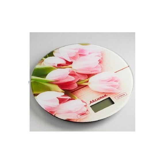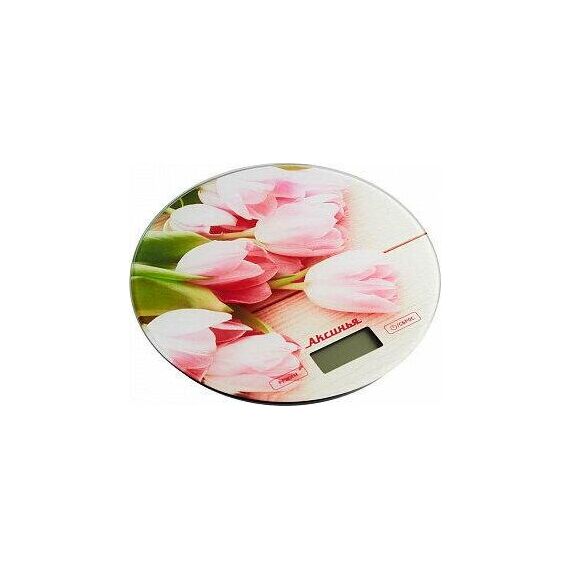 Весы кухонные АКСИНЬЯ КС-6503 "Розовые тюльпаны" 5 кг, стекло