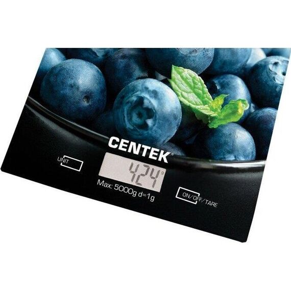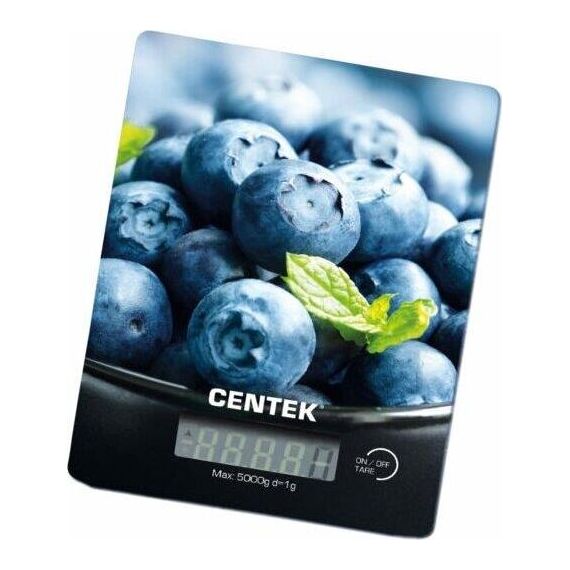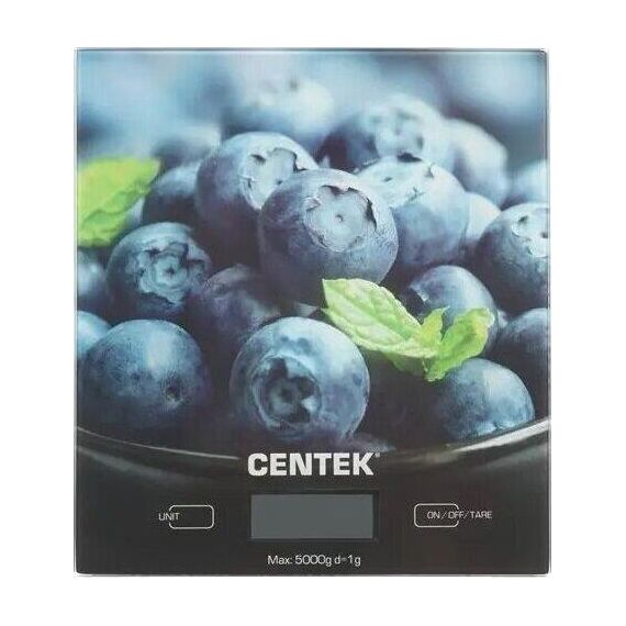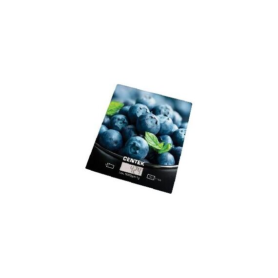 Весы кухонные Centek CT-2462 (Голубика) стеклянные, электронные, max 5кг, шаг 1г, шелкография, LCD