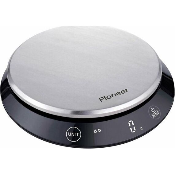 Электронные кухонные весы Pioneer PKS1011 Оборудованы датчиком высокой точности LED дисплей Сенсорное управление Материал платформы: нержавеющая сталь Материал основания: пластик Максимальный вес: 5 кг Определение объема молока и воды Индикация разряда батареи Индикация перегрузки Автоматическое отключение Автоматическая установка нуля