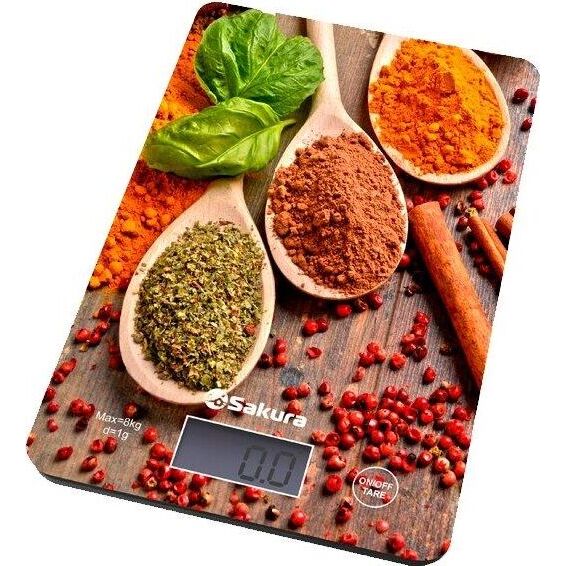 Весы кухонные SAKURA SA-6077DS темн. дерево специи
