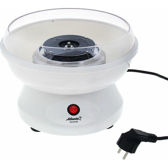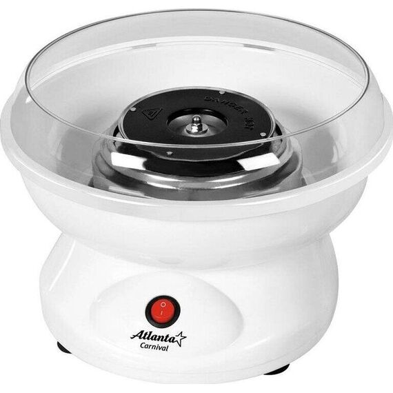Мощность 500Вт. ATLANTA ATH-3421 аппарат для сахарной ваты. Вкусное лакомство из обычного сахара. Защитный экран для безопасного использования. Долговечный кварцевый нагревательный элемент.