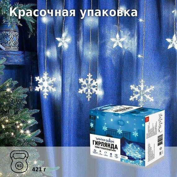 Электрическая гирлянда WINTER GLADE Электрическая гирлянда-занавес Winter Glade 126 ламп Холодный белый CC114