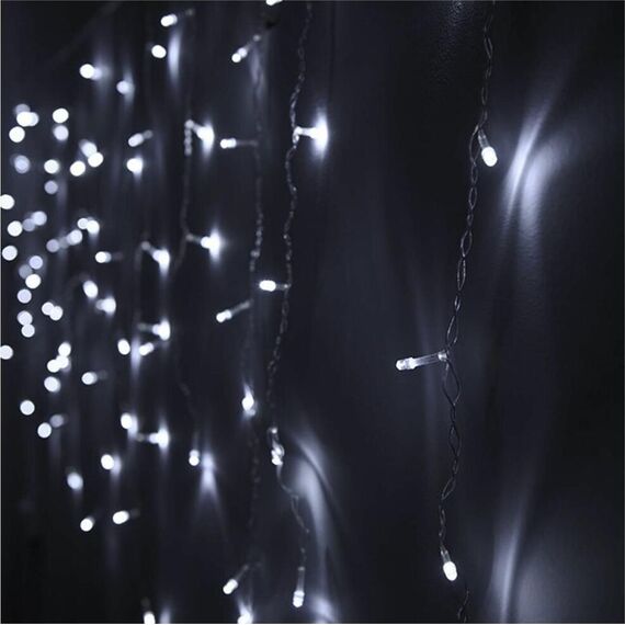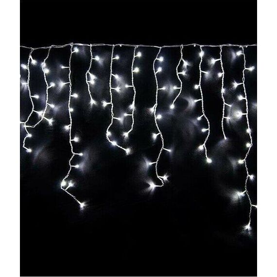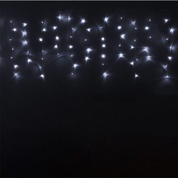 FUNRAY IC-72W (Бахрома) Гирлянда светодиодная 1.6*0.7м, 72LED, IP20, гирлянда со световыми элементами, в виде бахромы, длина изделия составляет 1,6*0,7 метра, количество светодиодных ламп 72 шт, питание от сети 220В, цвет свечения: белый, присутствует контроллер, 8 режимов свечения, прозрачный шнур, гирлянда имеет степень защиты IP20 - защита от твердых частиц размером от 12 мм.