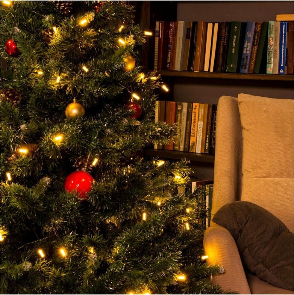 Цвет: Теплый желтый Количество ламп: 100 шт Тип ламп: Сведодиоды Источник питания: 220V Цвет шнура: Темно-зеленый