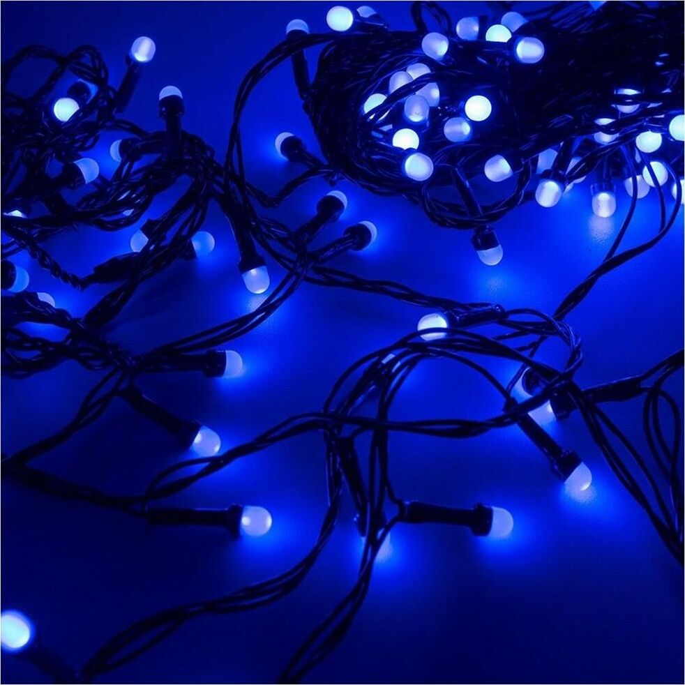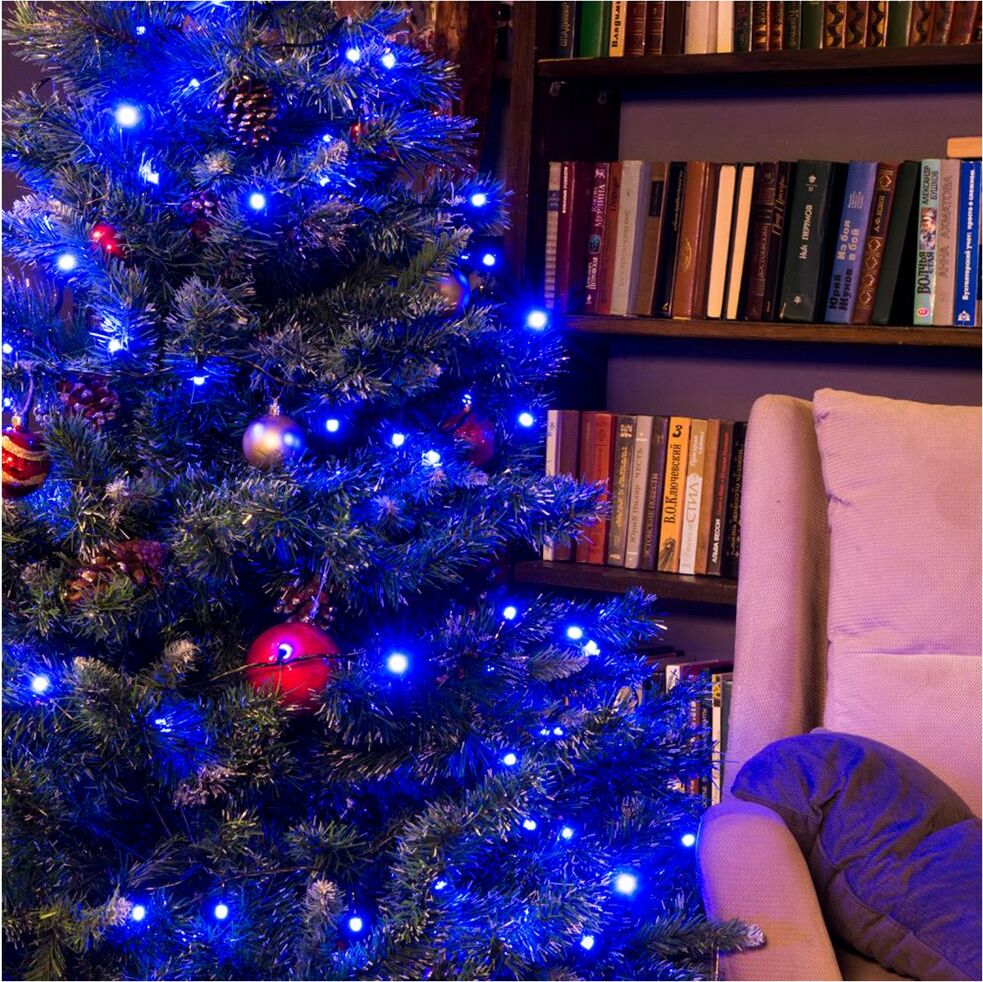 Цвет: синий Количество светодиодов: 100 шт Цвет шнура: темно-зеленый Контроллер: 8 режимов Источник питания: 220В