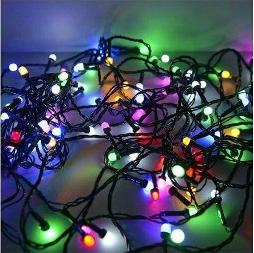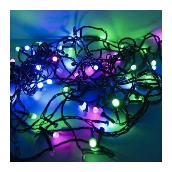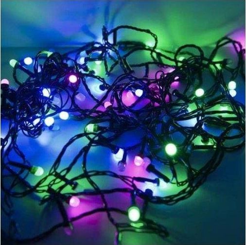 Цвет: мульти (6 цветов) Количество светодиодов: 100 шт Цвет шнура: темно-зеленый Контроллер: 8 режимов Источник питания: 220В