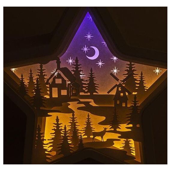 Светодиодная рамка "Night Star" в форме звездочки - это стильный элемент декора, который станет настоящим украшением вашего дома. Она выполнена из белого пластика, благодаря чему отлично вписывается в любой интерьер. Внутри рамки спрятано 14 светодиодов, которые создают мягкое свечение. А благодаря расположению силуэтов в несколько рядов, изображение на светильнике становится объемным и завораживающим. Светильник "Night Star" можно использовать в качестве ночника или просто для создания уютной атмосферы. Размер рамки 235*55*225мм. Питание от батареек или через шнур USB.