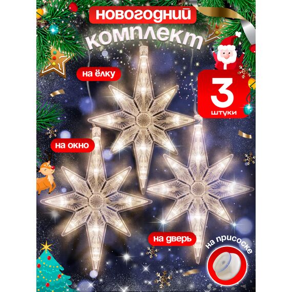 Идеальное украшение для вашего дома – это комплект гирлянд из 3 штук с присоской и светодиодами, которую можно легко разместить в любом уголке. Светодиодная технология обеспечивает теплый свет, который создает уютную атмосферу. Это отличное дополнение к различным типам декора, будь то зимние праздники или осенний уголок.