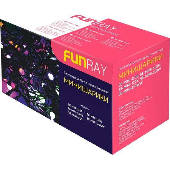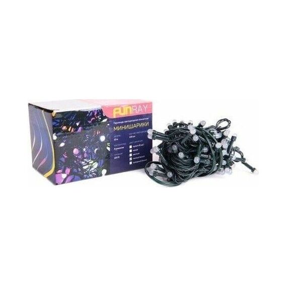 LED гирлянда FUNRAY "Минишарики", SE-MINI-110WW, 10М, 100LED, тепл.бел,темно-зел.шн 0,7м, контр,