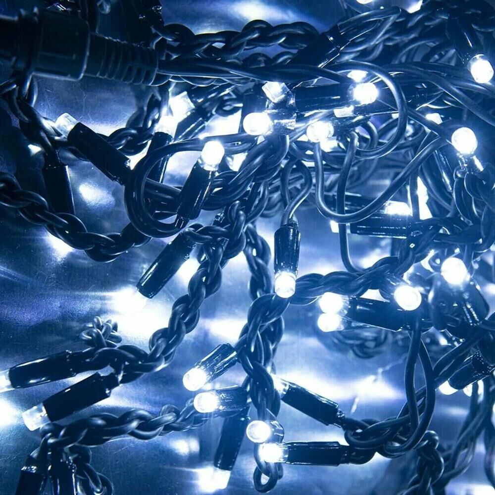 Гирлянда "Бахрома" - применяется для декорирования арок, фасадов, витрин. Представляет собой горизонтальный гибкий шлейф, от которого исходят вертикальные нити различной длины и действительно напоминает бахрому. Цвет свечения - холодный белый. Размеры гирлянды - 3х0,7м. Длина шнура от вилки до начала гирлянды - 1,5м