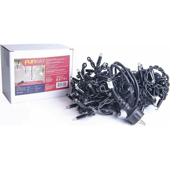 LED гирлянда FUNRAY уличная Бахрома SIC-120W, 3.0*0.7м,120 ламп,хол.бел,IP60,черн.шн.1.5м,СОЕД,