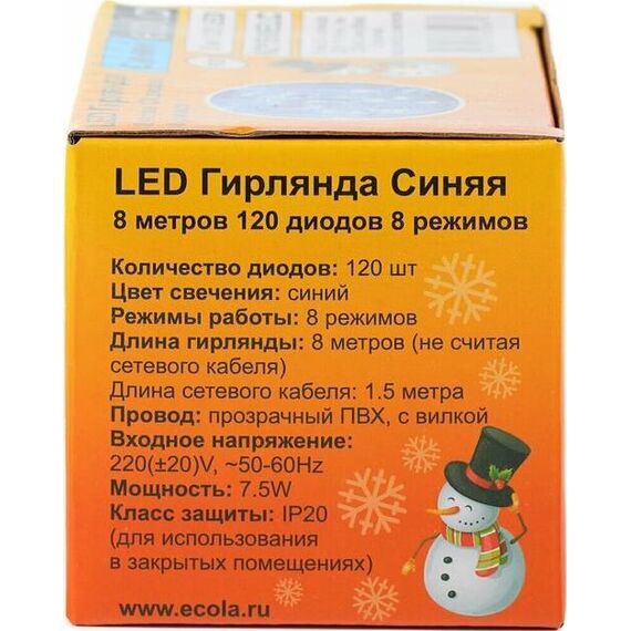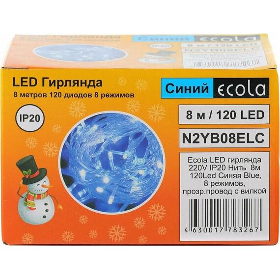 Светодиодная гирлянда ECOLA N2YB08ELC IP20 Нить 8м 120Led Синяя 8 режимов