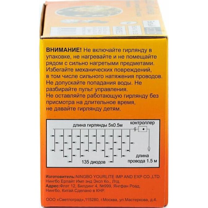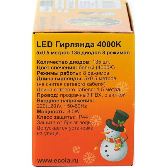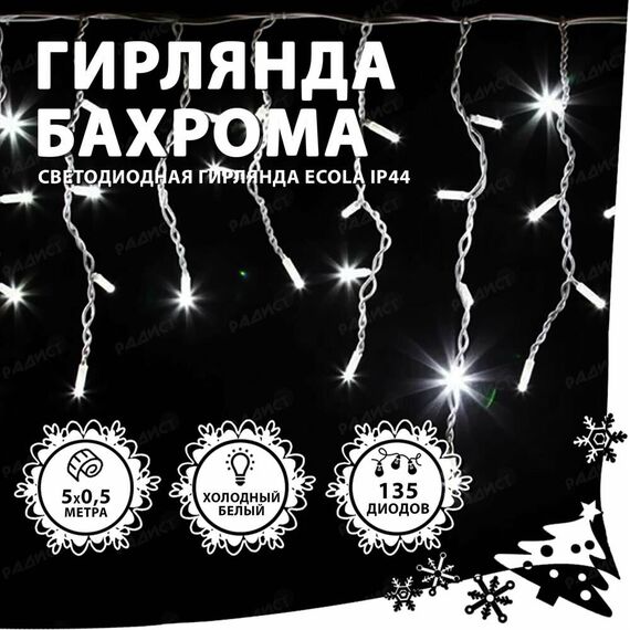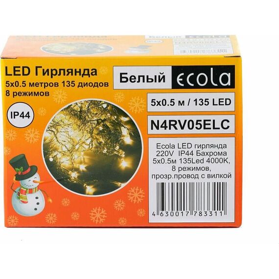 Светодиодная гирлянда ECOLA N4RV05ELC 220V IP44 Бахрома 5x0.5м 135Led 4000K нейтральный белый