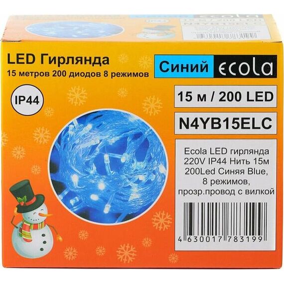 Светодиодная гирлянда ECOLA N4YB15ELC 220V IP44 Нить 15м 200Led Синяя