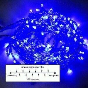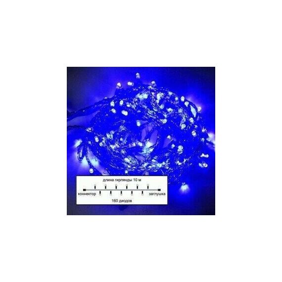 Светодиодная гирлянда ECOLA N6YB10ELC LED гирлянда 220V IP44 Нить наращиваемая (доп секция) 10м 160Led Синий Blue, прозр.провод с коннекторами синий