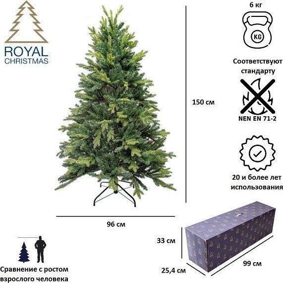 Елка ROYAL CHRISTMAS ROYAL CHRISTMAS Ель Arkansas Premium Hinged PVC/PE — 150 см 291150 291150
