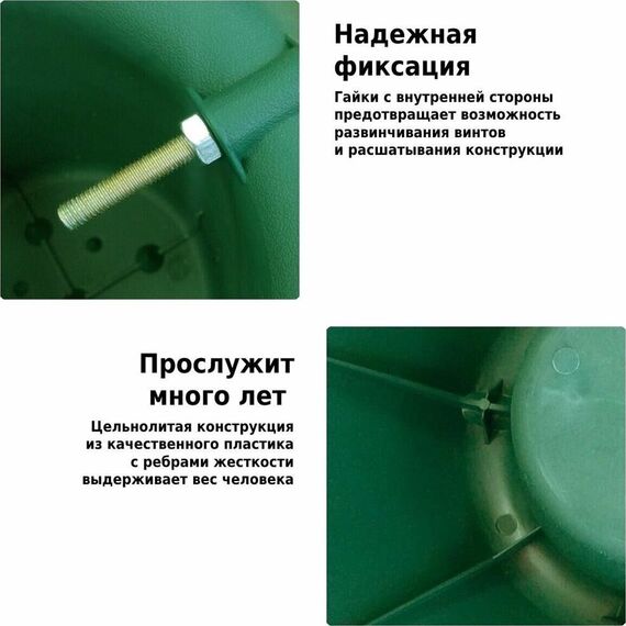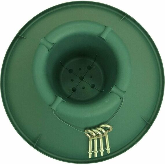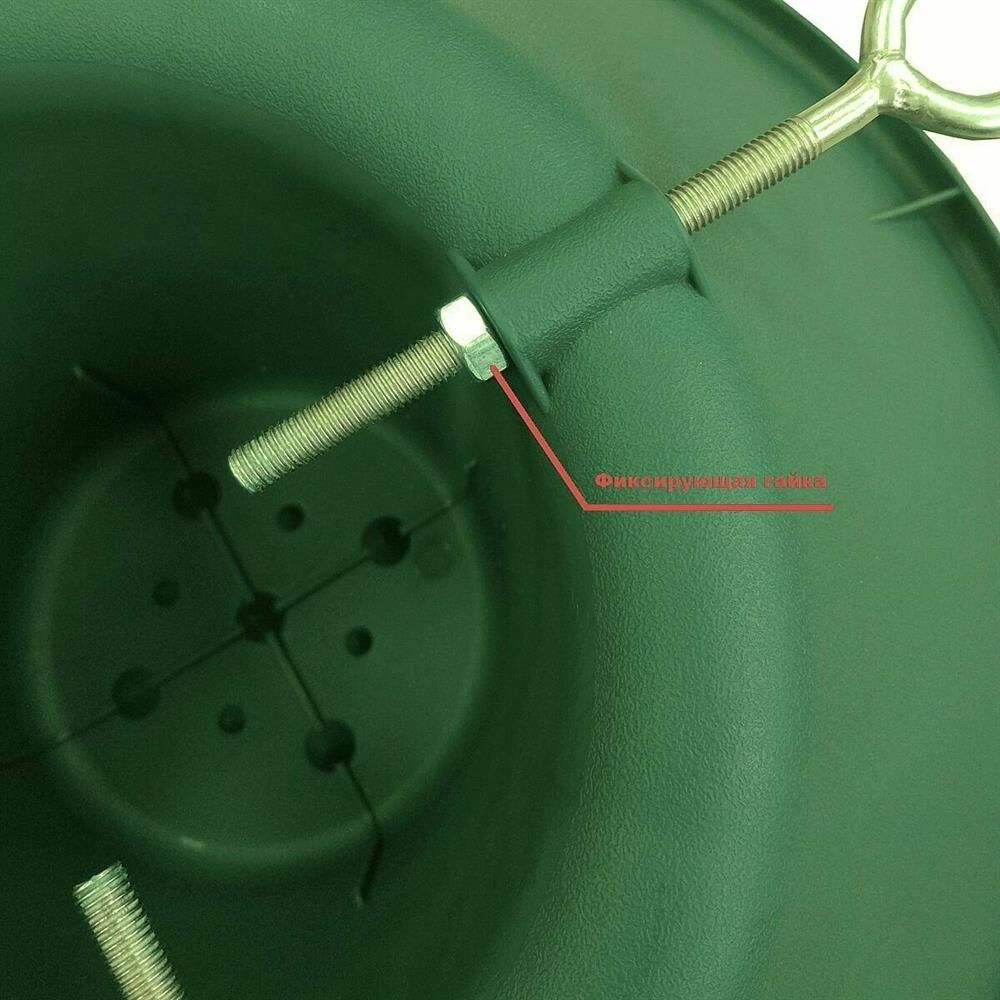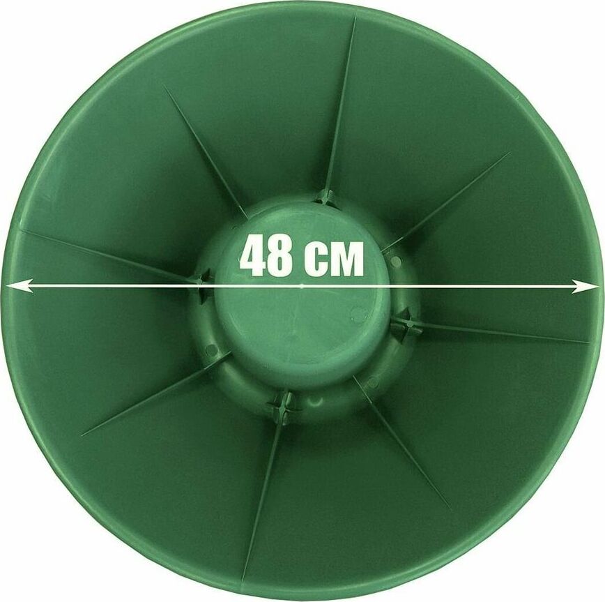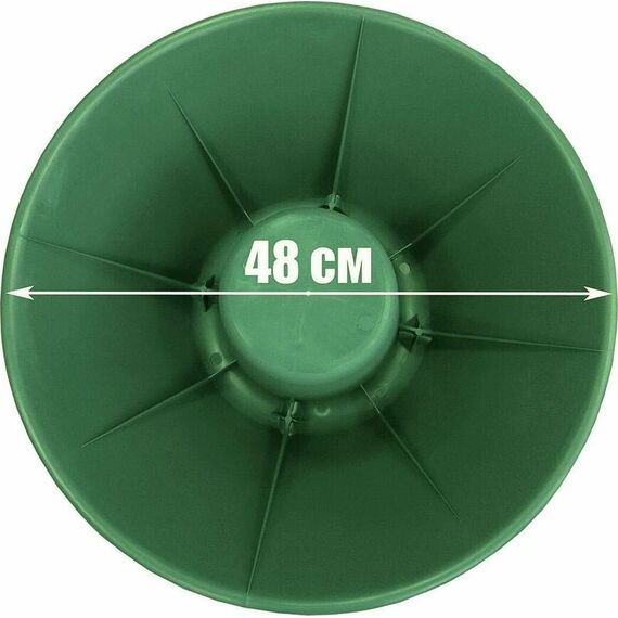 Основание + 4 винта с ушком + 4 гайки. Размер (ДМхВ): 48х20 см. Вес нетто: 0,67 кг. Вес жгута: 5 г. Объем поддона для воды: 3 л. Материал: полипропилен. Цвет: зеленый.