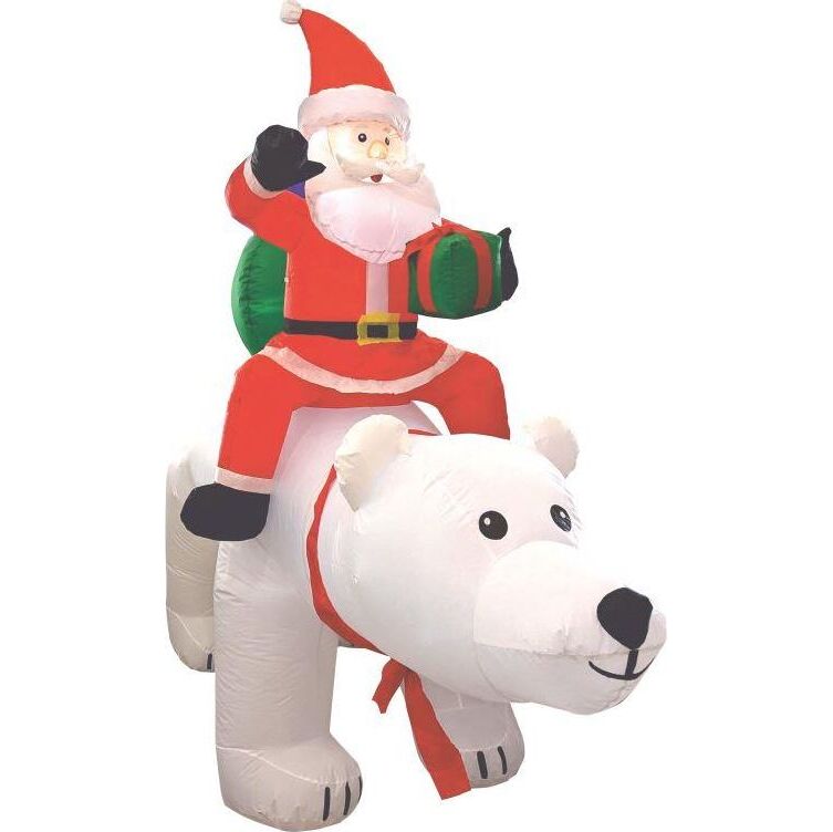 Представляем Вам новинку нашего ассортимента - надувные фигуры для украшения к Новому году! Новогодние игрушки, елочные украшения довольно традиционны и повторяются из года в год. Надувные новогодние украшения ярко выделят именно ваш магазин. Они наполняют пространство атмосферой праздника! Надувная фигура с Дедом Морозом верхом на белом медведе - это великолепное праздничное украшение, которое непременно создаст неповторимую атмосферу радости и веселья. Есть подсветка. Установка надувной фигуры занимает минимум времени и не требует специальных навыков. Работают от сети,компрес/колышк/верев,90*190*182см,IP44,220В