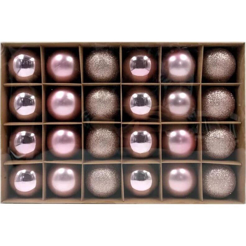 Шары и украшения WINTER GLADE Набор ёлочных шаров пластик, 6 см, 24 шт, розовый микс, 6024G006