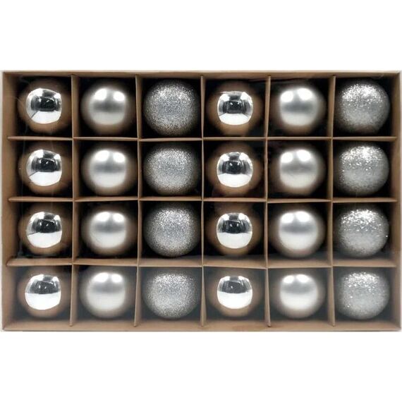 Шары и украшения WINTER GLADE Набор ёлочных шаров пластик, 6 см, 24 шт, серебряный микс, 6024G002