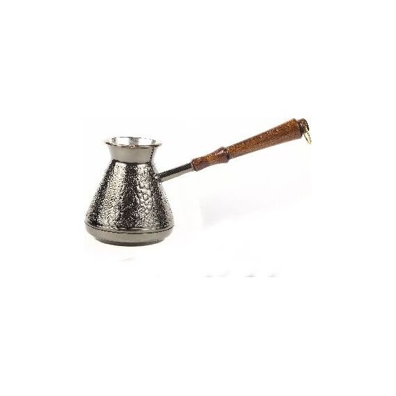 "Виноград" 0,6л. Медная турка классической конусообразной формы с утолщённым дном предназначена для приготовления ароматного натурального кофе. Внутренняя поверхность покрыта пищевым оловом. Наружная сторона украшена оригинальным орнаментом. Деревянная ручка является надёжным теплоизолирующим материалом. Подходит для всех типов плит, кроме индукционных. Проста в эксплуатации. Объём: 600 мл.