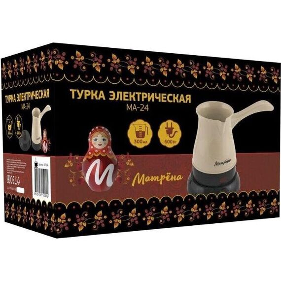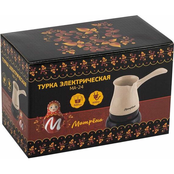 Объем 300 мл. Ненагревающаяся ручка. Световой индикатор работы. Защита от перегрева при работе без воды. Корпус из термостойкого пластика. Закрытый нагревательный элемент из нержавеющей стали. Длина шнура 75 см. Мощность 600 Вт.