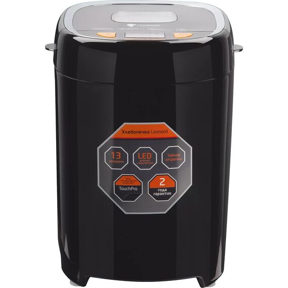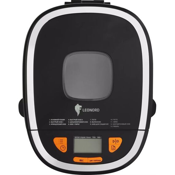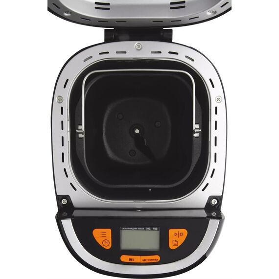 Хлебопечка Мощность 550 Вт Размер буханки 700/900 г 13 программ приготовления: 1. Основной режим 2. Быстрый хлеб I 3. Французский хлеб 4. Быстрый хлеб II 5. Цельнозерновой хлеб 6. Кекс/Пирог 7. Тесто 8. Выпекание 9. Хлеб для сэндвичей 10. Джем 11. Вымешивание теста 12. Безглютеновый хлеб 13. Пекарь Выбор цвета корочки: светлая, средняя, темная Чаша с антипригарным покрытием Окно для наблюдения за процессом приготовления LED дисплей В комплекте: мерный стаканчик, мерная ложка, крючок Таймер отсрочки запуска до 13 часов Функция памяти на 10 минут Поддержание температуры в течение 1 часа Напряжение: 220-240 В, 50-60 Гц Состав (материал): пластмасса, металл