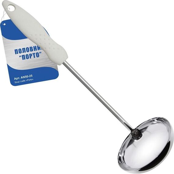 Половник "Порто" хром с белой ручкой AN50-25 Материал: Металл (Сталь хромированная), Пластмасса