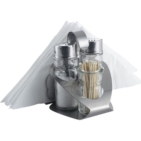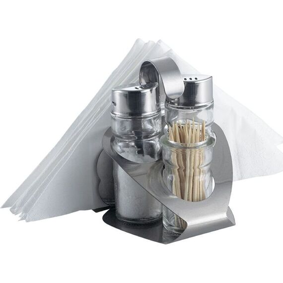 Набор для специй ZEIDAN Z-11041 4 предмета, Набор для специй с салфетницей и ёмкостью для зубочисток, 4 предмета. Высококачественная нержавеющая сталь и стекло, объем ёмкостей - 40 мл. Подарочная упаковка.