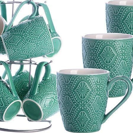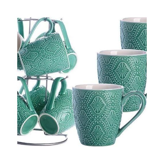 Набор чашек 7 пр LR (x6). Материал: фарфор. Цвет: темно-зеленый Подставка: металл. Размер кружки: D 8 см, высота 9 см. Объем: 300 мл. Размер подставки: D 15 см, высота 28,5 см. Размер упаковки: 18 х 16,7 х 29,5 см. Упаковка: коробка. Вес: 1,75 кг. Страна производитель: Китай.