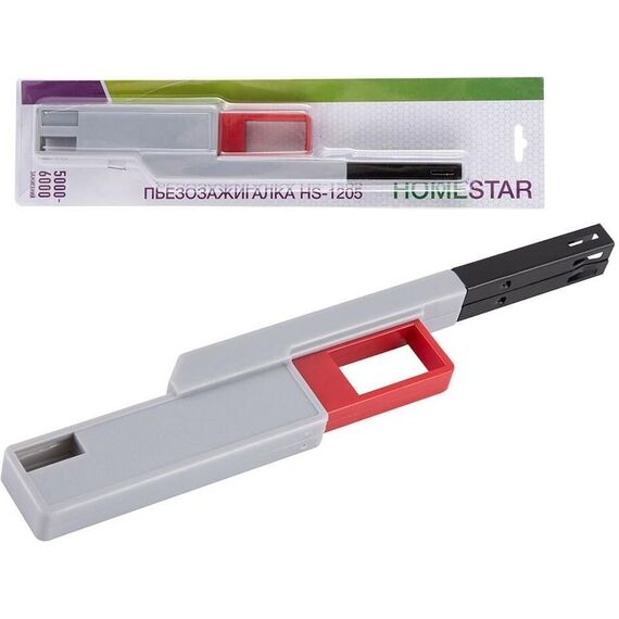 HOMESTAR HS-1205 серая Назначение для газовых плит Вес нетто, кг 0,067 Тип зажигалка Материал корпуса пластик Цвет синий Тип поджига пьезоэлектрический Ветроустойчивость да Габариты без упаковки, мм 3x66x44