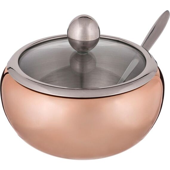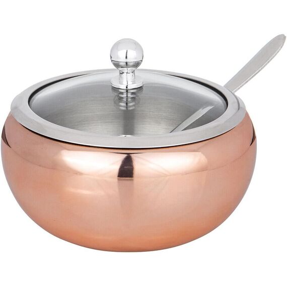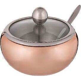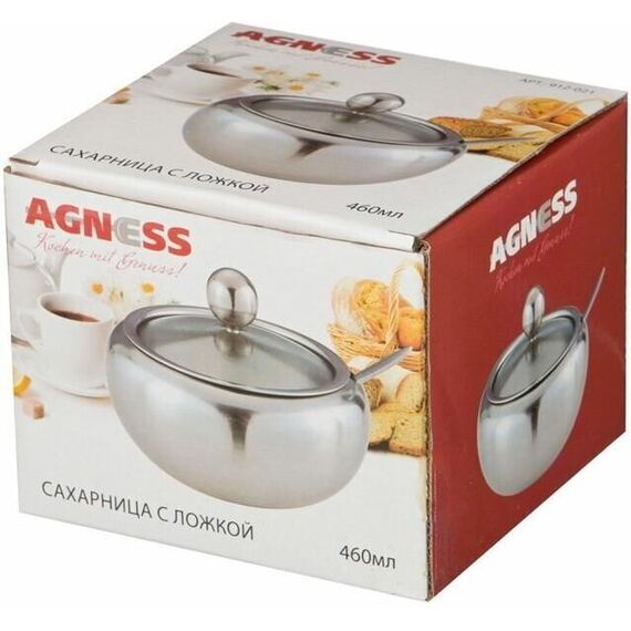 Высота, см: 10 Диаметр, см: 11 Материал: Нержавеющая сталь Объем сахарницы: 460 мл Объем, л: 0.46 Размер: 11х10 см Сахарница выполнена из нержавеющей стали, имеет прозрачную крышку, сквозь которую видно количество содержимого, и ложечку для насыпания, которая располагается в выемке на корпусе сахарницы. Широкое горло и округлая форма позволяют удобно хранить, зачерпывать сахарный песок или доставать кусочки сахара. Удобная ручка на крышке облегчает открывание сахарницы.