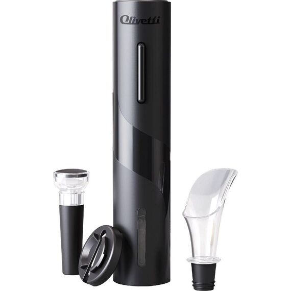 Набор сомелье с электроштопором для вина. До 30 циклов работы с одного комплекта батареек. Надежный пластивый корпус. Контроль процесса открытия через ревизионное окно Открытие бутылки одной кнопокй. Кнопка автоматического снятия пробки Аэратор для вина Нож для удаления защитной фольги с бутылки Вакуумная пробка для хранения открытого вина до 3х дней безз потери вкусовых качеств Работа от 4 батареек типа АА (в комплект не входят) Стильная упаковка OLIVETTI