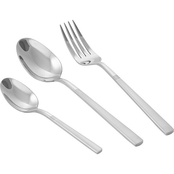 LARA LR10-15/18 Набор столовых приборов LARA «VEGA», 18 пр, зерк. полировка, остр. вилка, сатин Надежность. Уверенность. Комфорт. Набор Vega оснащен очень толстыми рукоятками – 4.5 мм, что редкость для столовых приборов, но маст-хэв для людей, привыкших браться за все крепкой хваткой. Толщина рукояток, непростая матовая обработка – отличительные характеристики данного набора. Столовые приборы LARA изготовлены из стали с 18-процентным содержанием хрома и имеют зеркальную полировку класса «А». Особое внимание уделено остроте зубьев вилки. Труднодоступные места между зубьями, в которых могут скапливаться остатки пищи, отполированы вручную так, чтобы сделать поверхность ровной и гладкой и повысить гигиеничность изделий. Глубина столовой ложки не менее 7 мм, что обеспечивает оптимальную вместительность.