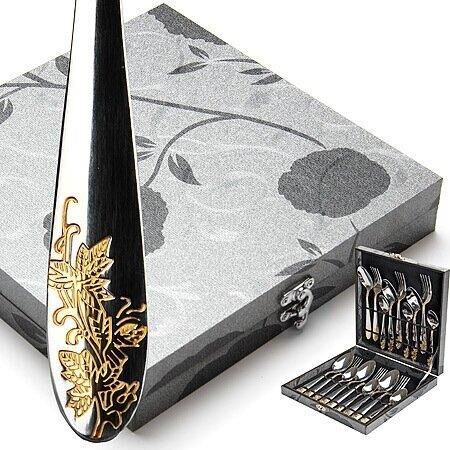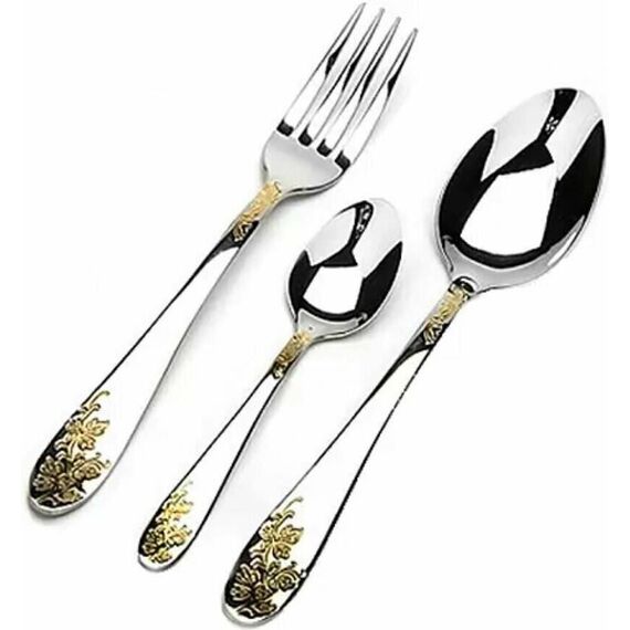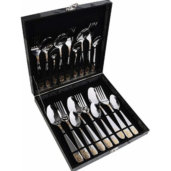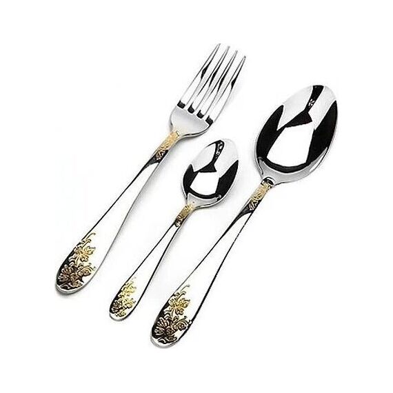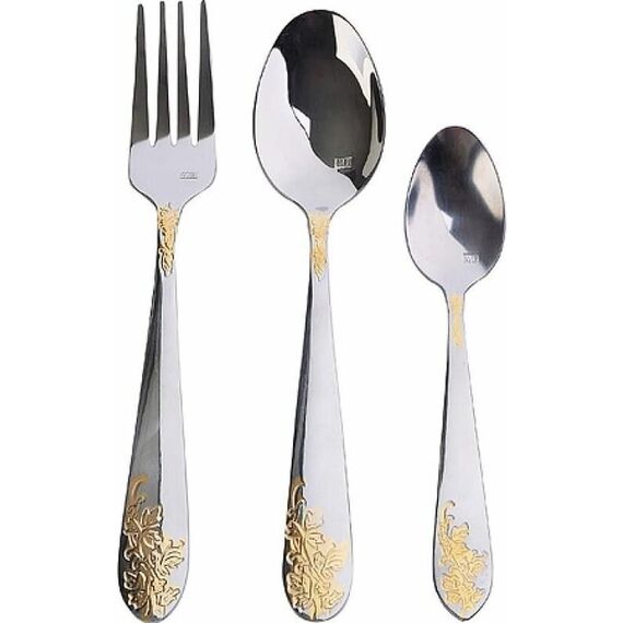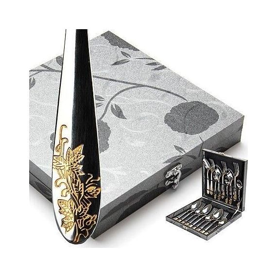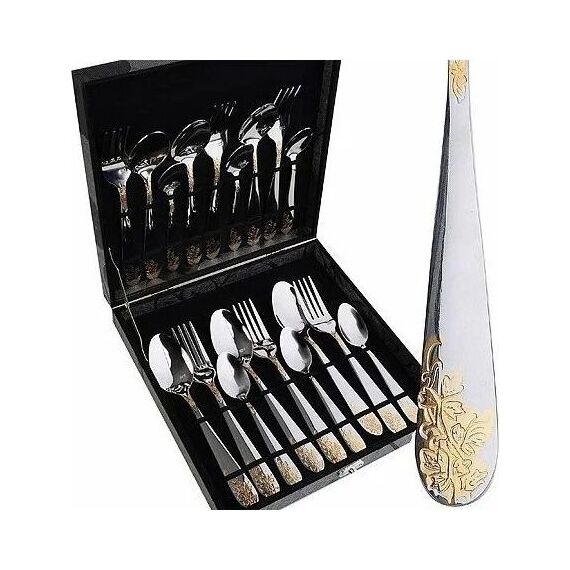 Набор столовых приборов MAYER&BOCH на 6 персон включает в себя 18 предметов: 6 столовых ложек, 6 столовых вилок, 6 чайных ложек. Столовые приборы изготавливаются из высококачественной нержавеющей стали, все изделия проходят тщательный технологический контроль. Приборы из нержавеющей стали такого состава отличаются высокими антикоррозионными свойствами, значительной устойчивостью к воздействию кислот и щелочей. Такая сталь не изменяет вкус и цвет пищи, не выделяет вредных веществ. Элегантные золотые узоры на столовых приборах выполнены по технологии плазменного напыления, обеспечивающего высокую износостойкость покрытия. Стильный, классический дизайн и отличное качество столовых приборов MAYER&BOCH делают набор желанной покупкой для любого, даже самого пристрастного, клиента. Набор столовых приборов MAYER&BOCH, безусловно, займет достойное место на любой кухне. Набор подходит как для ежедневного использования, так и для торжественных случаев. Набор упакован в красивый подарочный деревянный кейс. Подходит для м