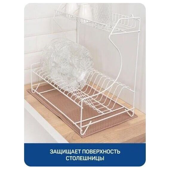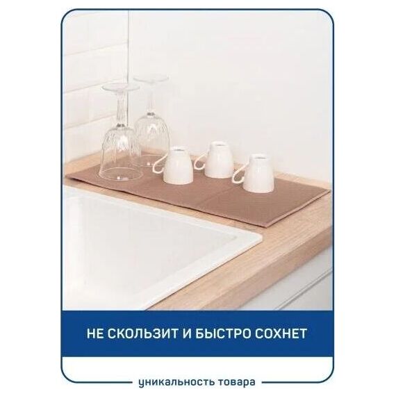 Коврик из микрофибры для сушки, размер 24*45см. Подходит для сушки посуды. Не скользит, отлично впитывает, защищает столешницу. Материалы: 100% полиэстер, поролон, ПВХ