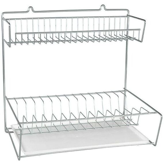 RUS-285001 Zn Сушилка для посуды настенная с поддоном, размеры 41х28.5х38 смСделана из стальной проволоки толщиной 5 мм с антикоррозийным покрытием. Цвет серебристый.