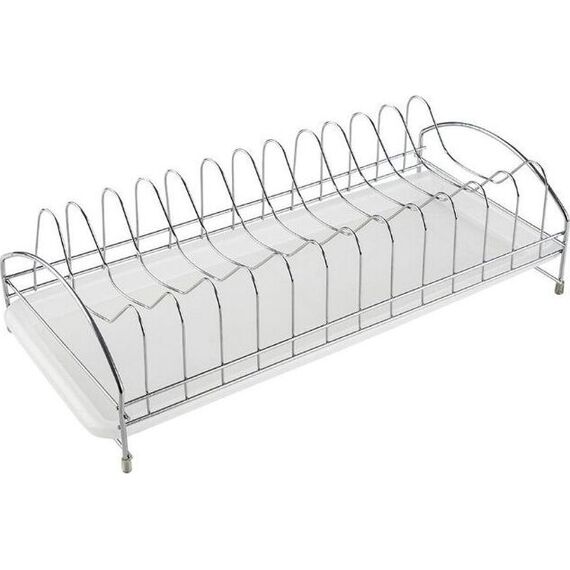 Сушилка для посуды может использоваться, как на рабочей поверхности, так и в шкафу Снабжена пластиковым поддоном Позволяет разместить до 14 тарелок Размер сушилки: 43*18*11 см Материал: хромированный металл, пластмасса